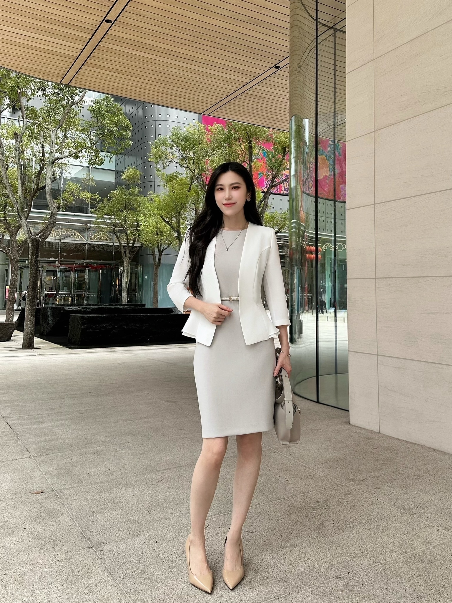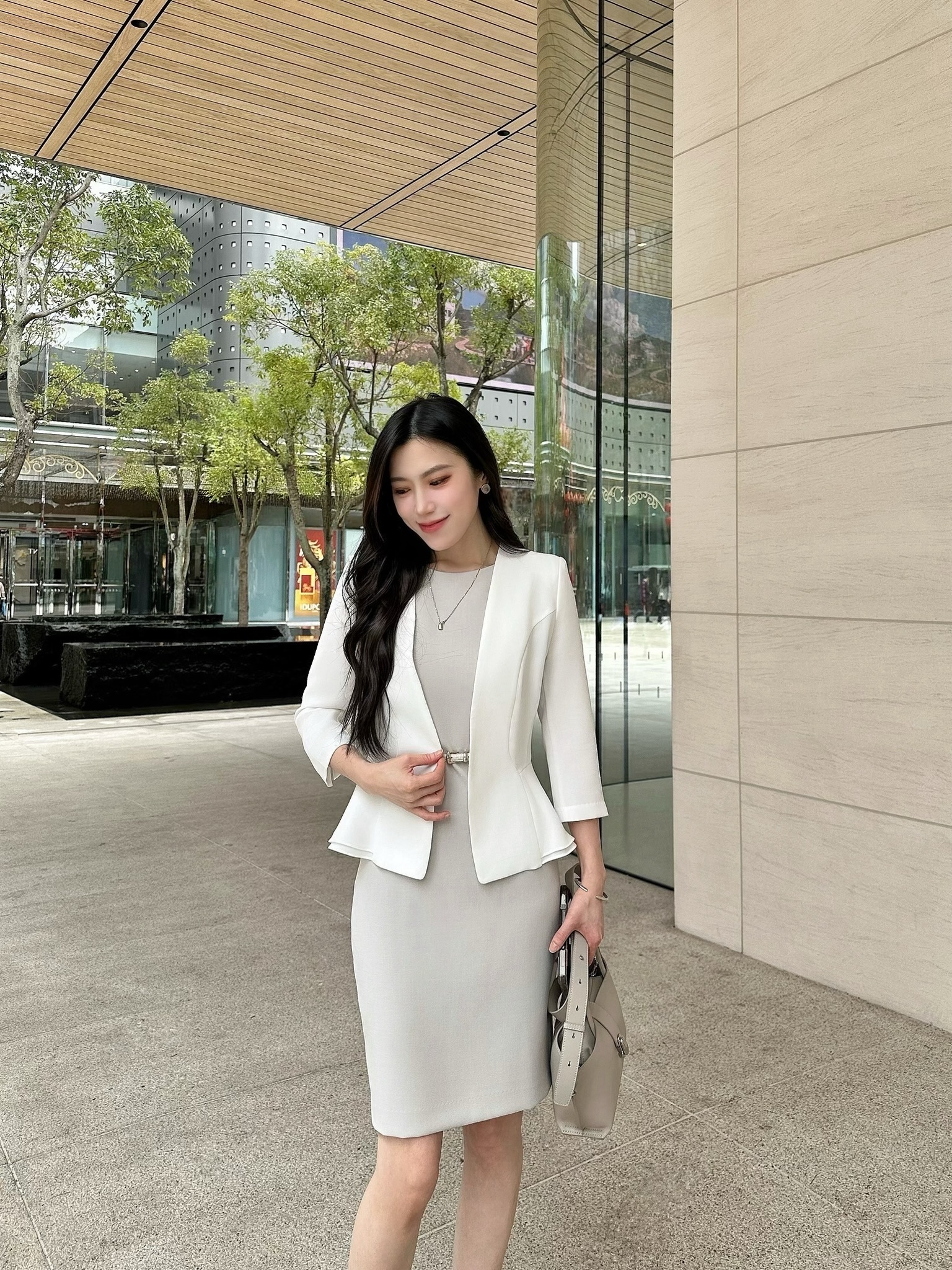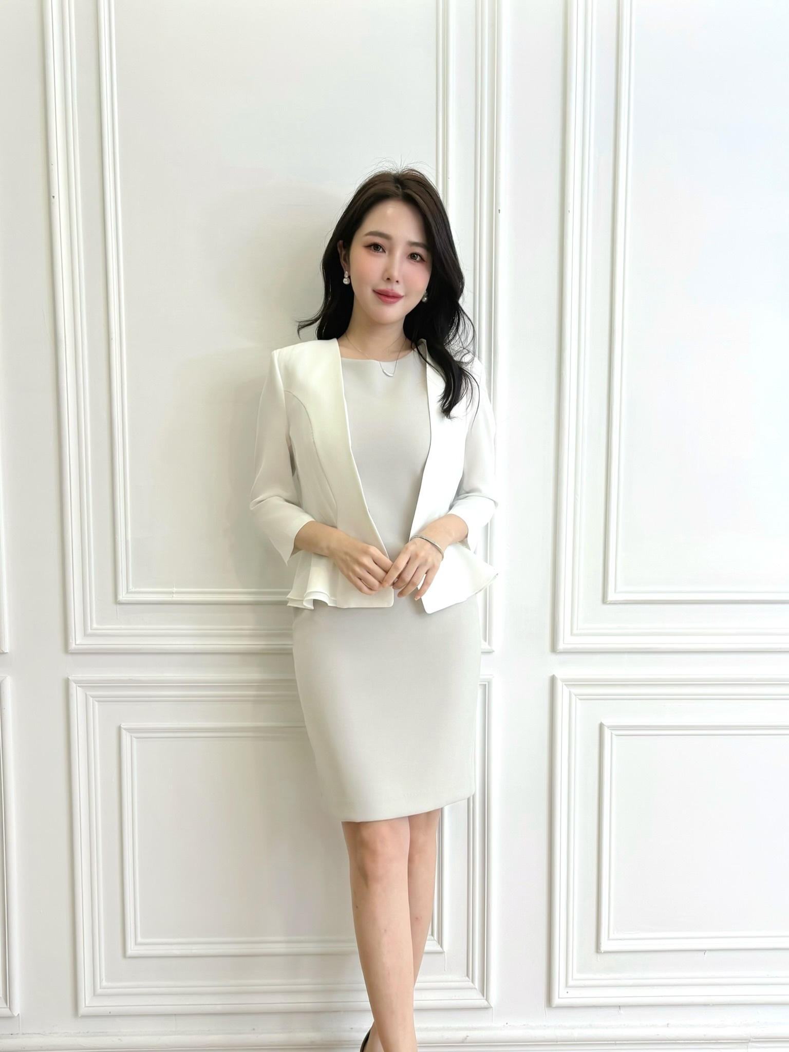 (JS自訂)雙層收腰顯瘦西外(白)